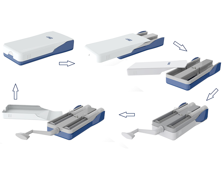 助推器設計及其包裝設計方案,針對客戶提出粘度較大的藥液,注射時需使用較大的推力的痛點,我們經過周密的客戶使用習慣調研結合醫護人員的使用習慣,設計的助推器,更易于用發力、便于醫護人員持針以及避免推桿的誤操作,也防止了使用之前活塞的移動。