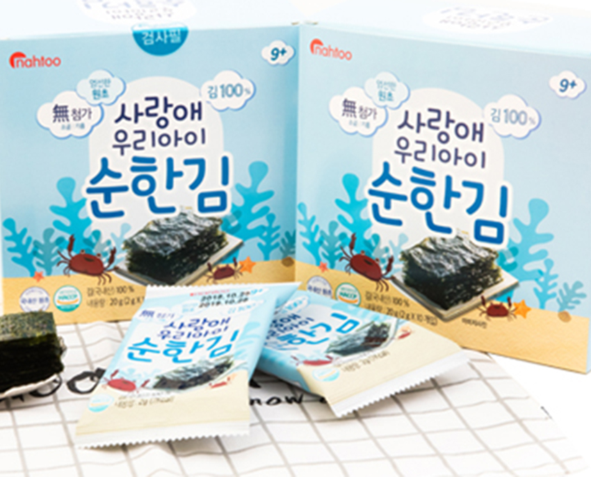 一套活力十足而簡潔的海苔小零食包裝設計。