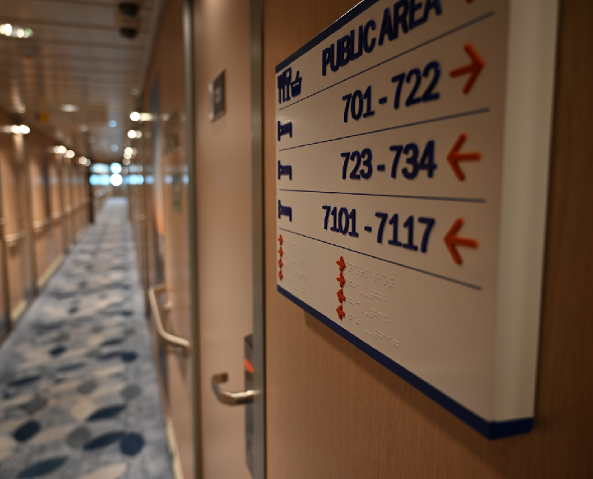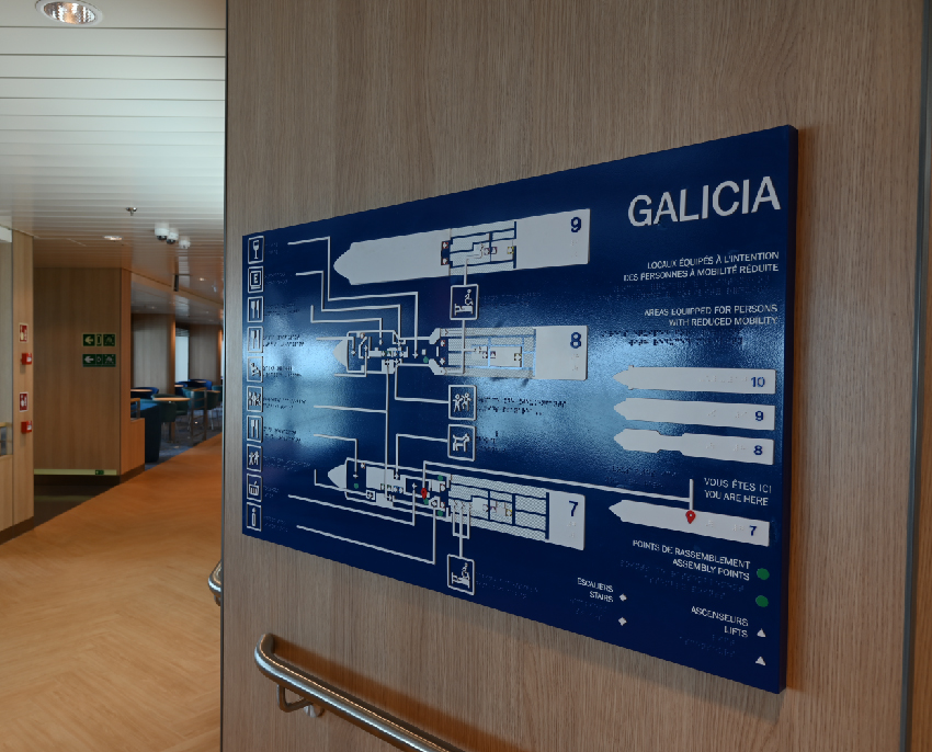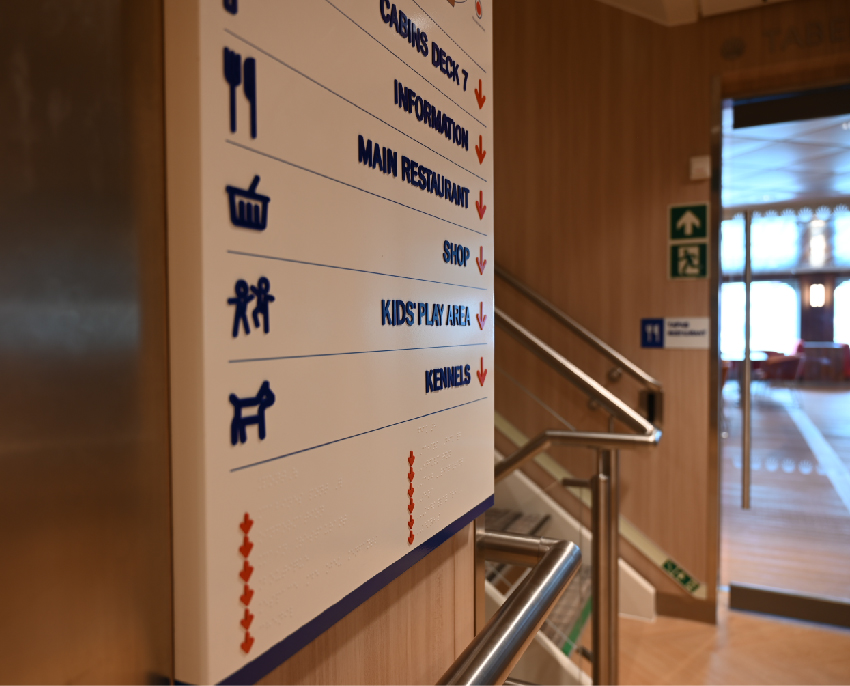 我司承接船上指示標識(包含吊式指示標識、艙室門牌、墻面指示標識、數(shù)字指示標識、梯道標識、Car Deck標識等)、商業(yè)標識(不銹鋼字、3M玻璃膜、裝飾畫、不銹鋼印刷)、盲文標識(盲文指示標識、安全標識等)的設計、制作與安裝工作。