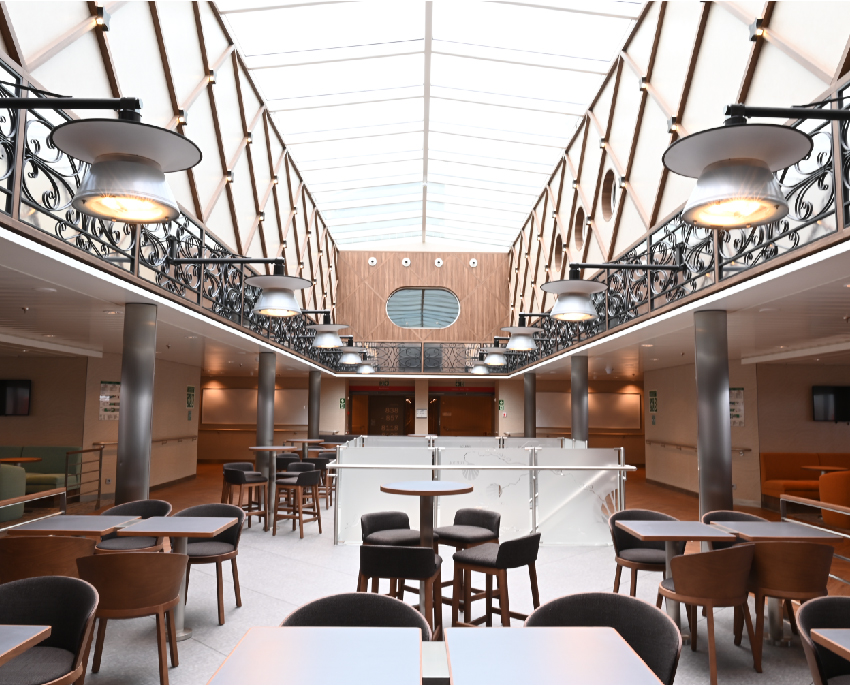 Brittany Ferries船是一家法國航運公司經(jīng)營,本船使用天然氣燃料(LNG)驅(qū)動,船長214.5米,寬27.8米,設計吃水6.4米,車道長2716米,航速23節(jié),滿足冰級規(guī)范的1C冰級要求及安全返港(SRtP)等國際最新規(guī)范,入級DNV-GL船級社。