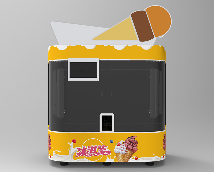 冰激凌自動販賣機屬于新零售智能設備設計,冰激凌自動販賣機主體結構采用國標鈑金定制加工,食品放置處材料均采用304不銹鋼、食品級PP、食品級硅膠軟管,保障食品干凈衛生;壓縮機是由意大利進口的1.5P的恩布拉科,減速機是蝸輪蝸桿,專門為冰淇淋量身定制的膨化泵能夠實現高膨化率,做到連續出杯不凍缸,蒸發缸能夠自動清洗,儲料缸預冷系統能夠預冷保鮮,機身能夠容納100個杯子,取杯口有3道安全保障。同時,全自動冰淇淋機能夠自動啟動,在夜間也會調整為夜間模式,節能又安全。