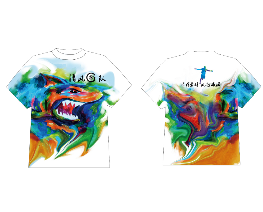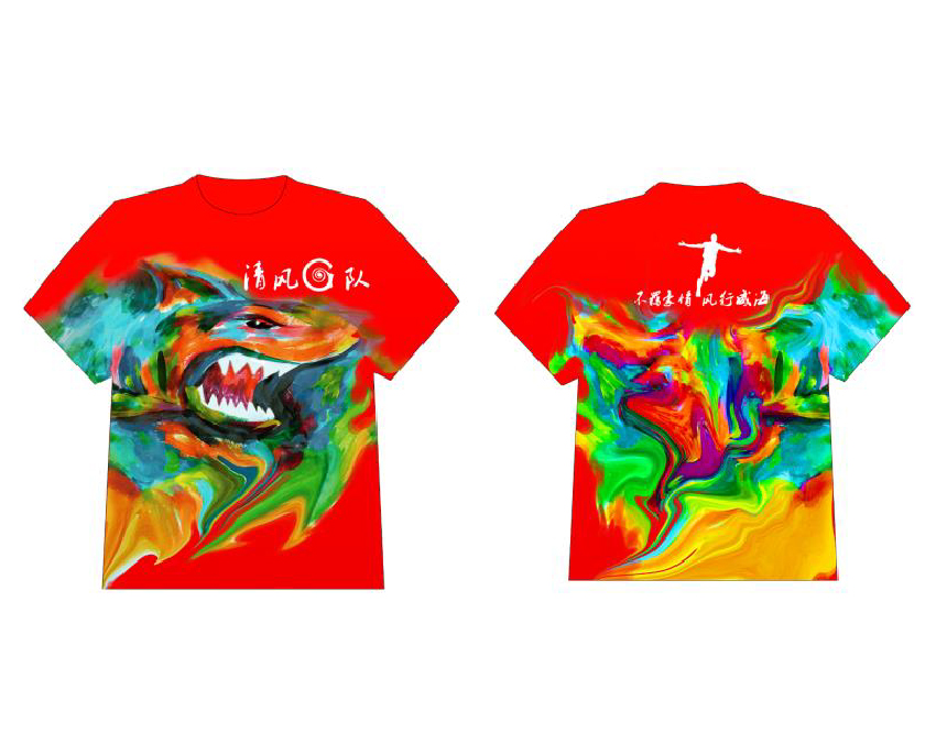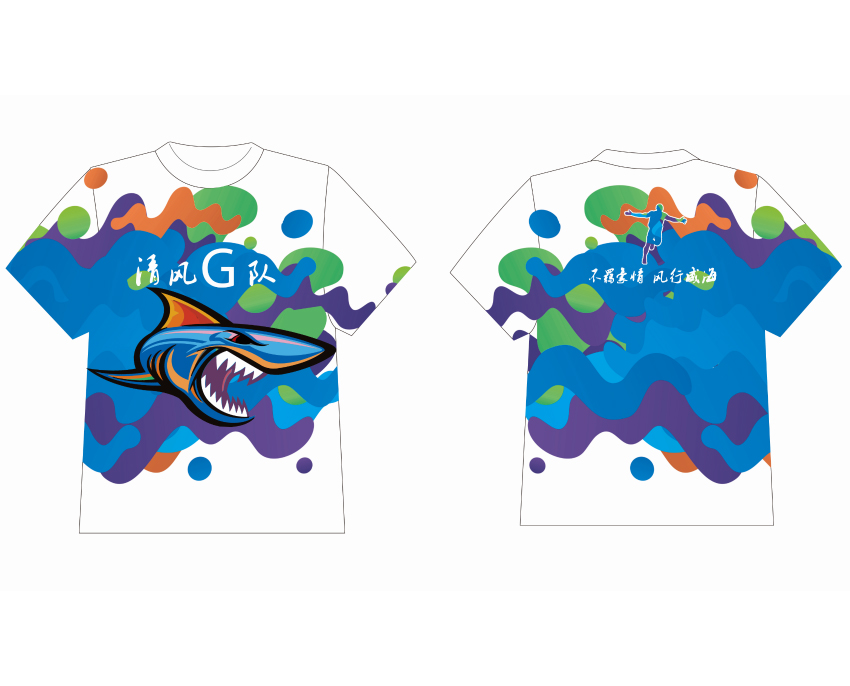 本案為清風(fēng)G隊(duì)所做的T恤圖案設(shè)計(jì),為原創(chuàng)手繪作品,圖案為鯊魚(yú),突出展現(xiàn)堅(jiān)韌不拔以及酷炫