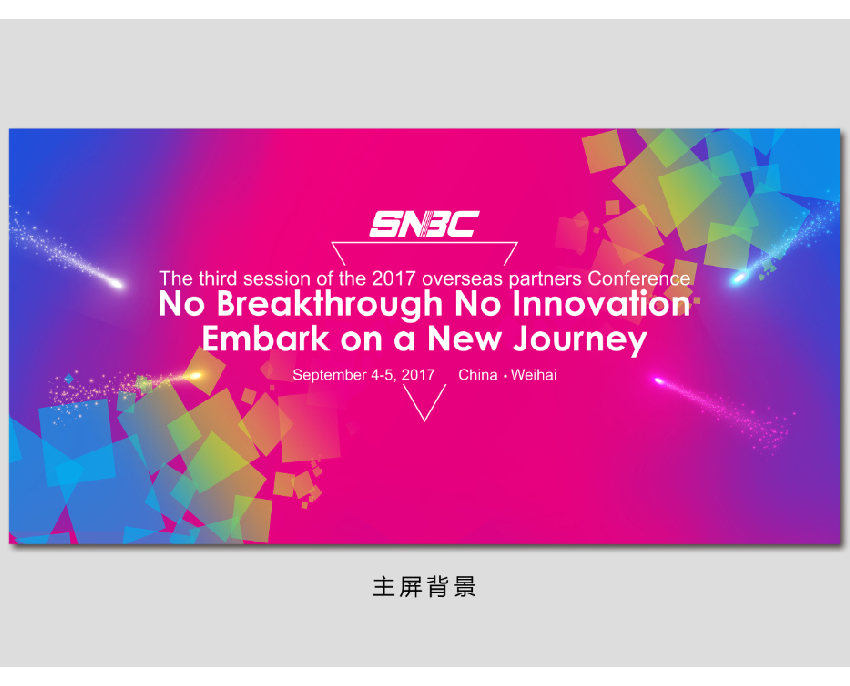 新北洋“不破不立·重新起航”第三屆海外合作伙伴大會主題設計,設計突出主題,以北洋藍打底,中間以藍紫色漸變, 代表新北洋和經銷商代表齊聚一堂,共同推進結構和布局調整,提高核心競爭力的設計思路。