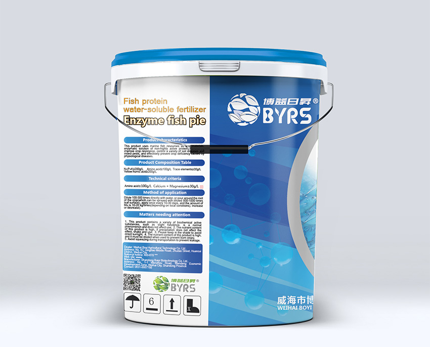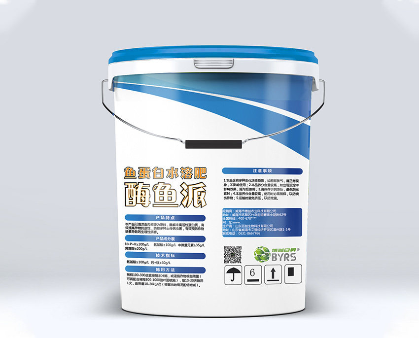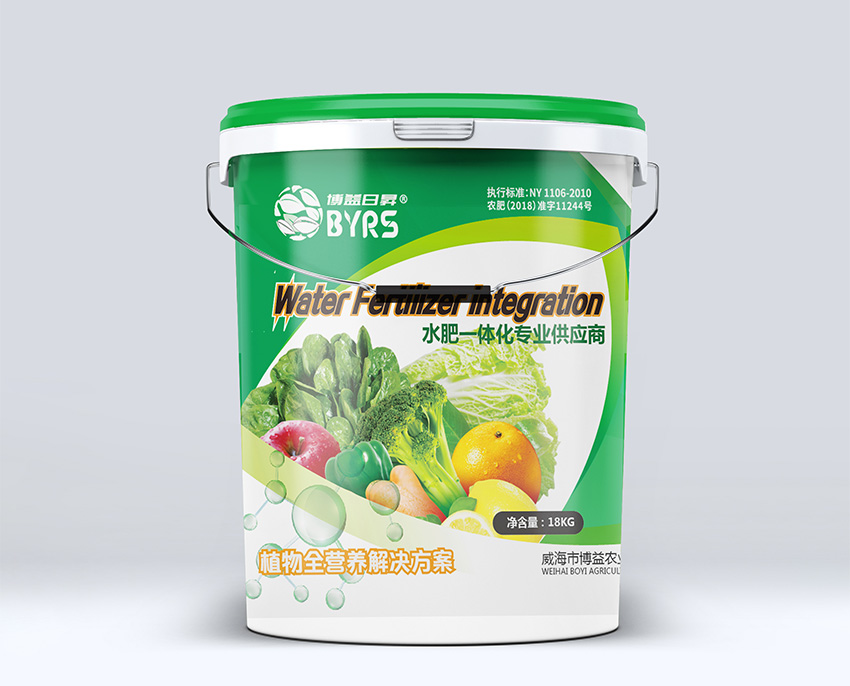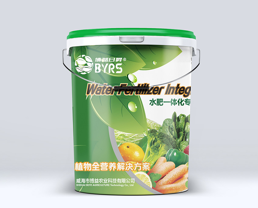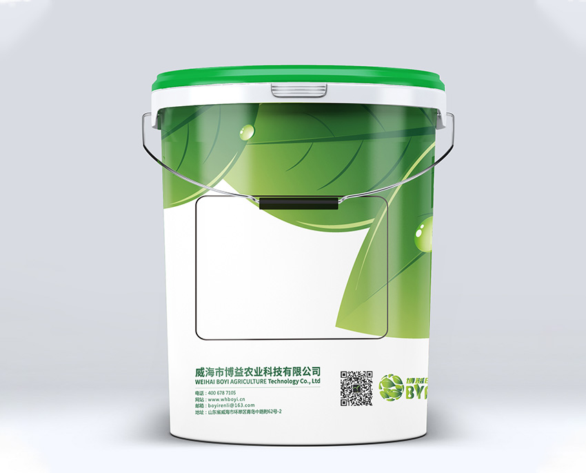 博蓋日昇肥料桶包裝設計根據其產品屬性采用了綠色和藍色兩個體系,綠色代表是瓜果蔬菜類,體現其生態、有機;藍色系列用于海洋魚類,使受眾能夠更加快速了解產品屬性及性能優勢。