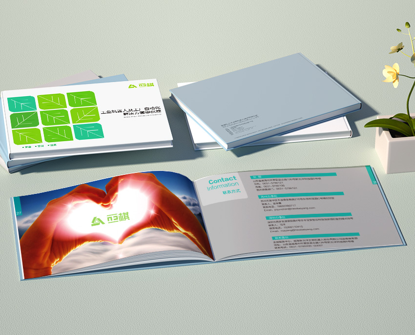 正棋機器人是新北洋集團旗下的一家從事工業用機器人的股份有限公司,本次單品設計延續該企業專用淺綠色,體現其產品的多樣性及智能化,圖面大色塊設計,更能吸引受眾眼球、突出產品,達到客戶要求之宣傳效果。