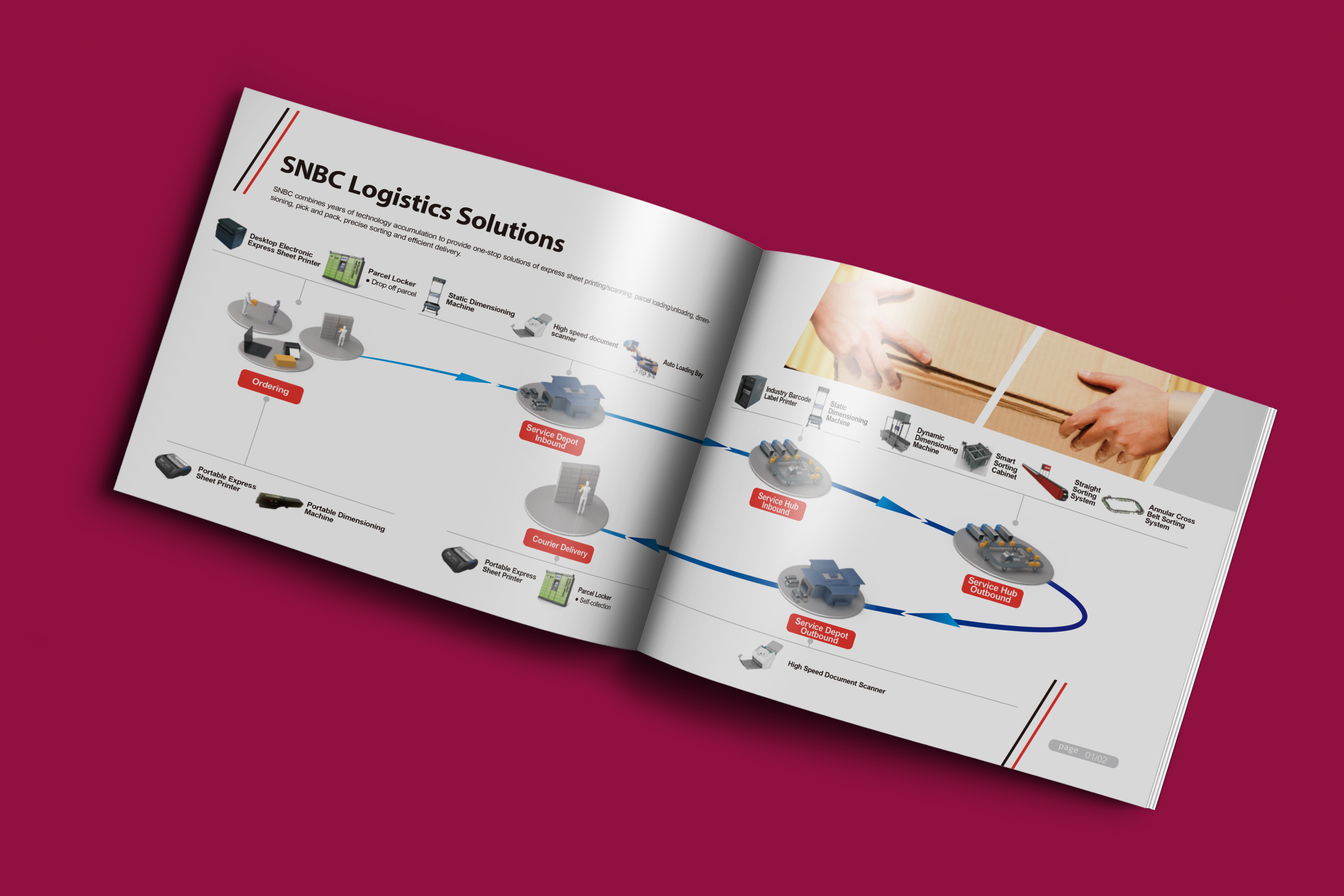 本次案例為物流解決方案的海外版本設(shè)計(jì),運(yùn)用大塊紅色穿插于整個(gè)畫冊(cè),簡(jiǎn)潔大氣。