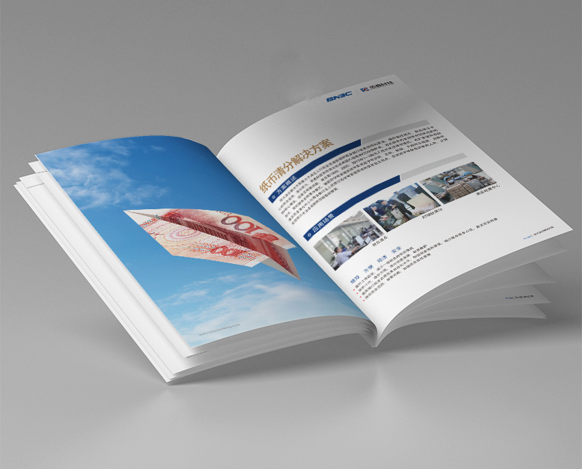 威海新北洋榮鑫科技股份有限公司(簡(jiǎn)稱“榮鑫科技”)是新北洋集團(tuán)發(fā)起成立的控股子公司,專業(yè)從事各類金融終端產(chǎn)品與解決方案的研發(fā)、生產(chǎn)、銷售和服務(wù)。本設(shè)計(jì)為紙幣清分解決方案畫(huà)冊(cè),封面選用白色,logo運(yùn)用凹凸效果,沉穩(wěn)、低調(diào),內(nèi)頁(yè)延續(xù)金融行業(yè)屬性,采用藍(lán)色和金色,配合簡(jiǎn)潔的文案及圖標(biāo)化設(shè)計(jì),突出展現(xiàn)其產(chǎn)品的性能優(yōu)勢(shì)。