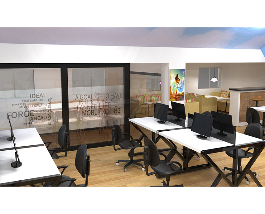 大學生創新創業基地空間設計 走簡約風路線,采用暖色調,凸顯當代創業大學生充滿充滿青春與活力,朝氣蓬勃,擁有拼搏精神,體現基地精神。